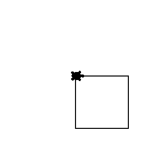 kääntyy 90 astetta oikealle ja liikkuu taas 100 askelta eteenpäin.
