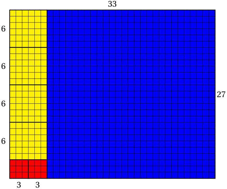 Viimeinen jakaja $3$ on suurin yhteinen tekijä. Prosessia voi havainnollistaa myös seuraavasti: